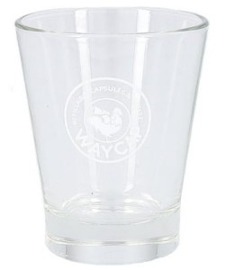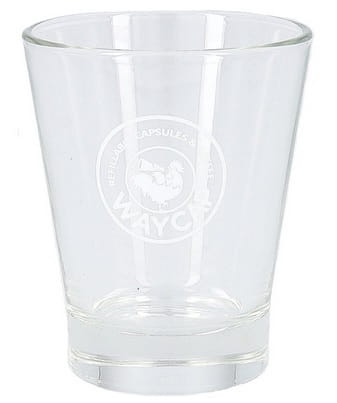 Szklanka/kieliszek do espresso z logo Waycap grawerowanym w kolorze białym.